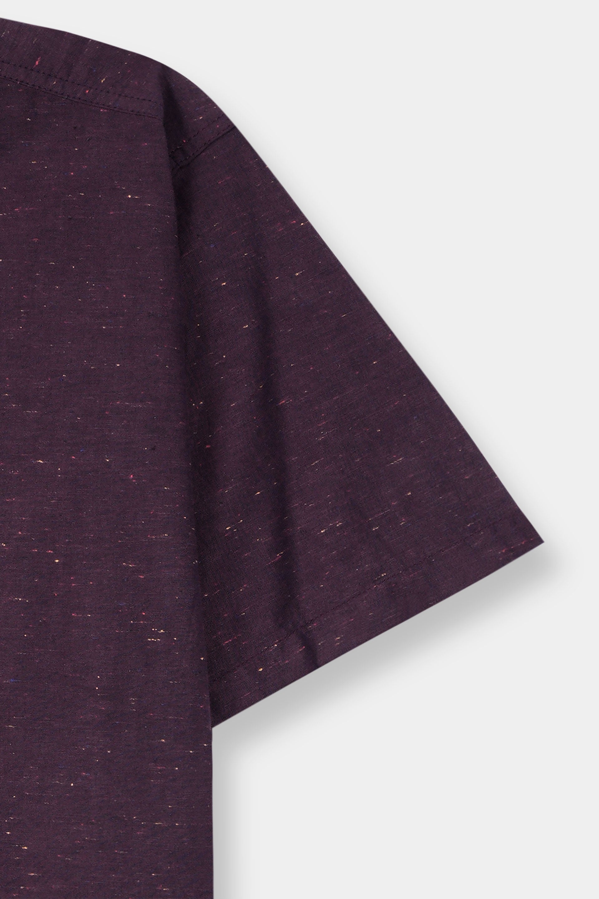 This slim-fit shirt combines the classic appeal of a coat collar with the relaxed vibe of a Hawaiian style. Crafted from pure cotton, it offers breathable comfort and durability. The deep purple fabric, accented with subtle dot patterns, adds a refined yet playful touch, making it ideal for both casual and semi-formal occasions. Its half sleeves enhance ease of movement while maintaining a polished look.
