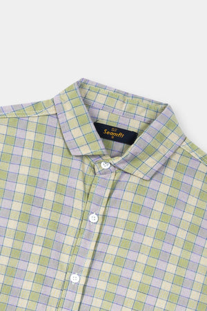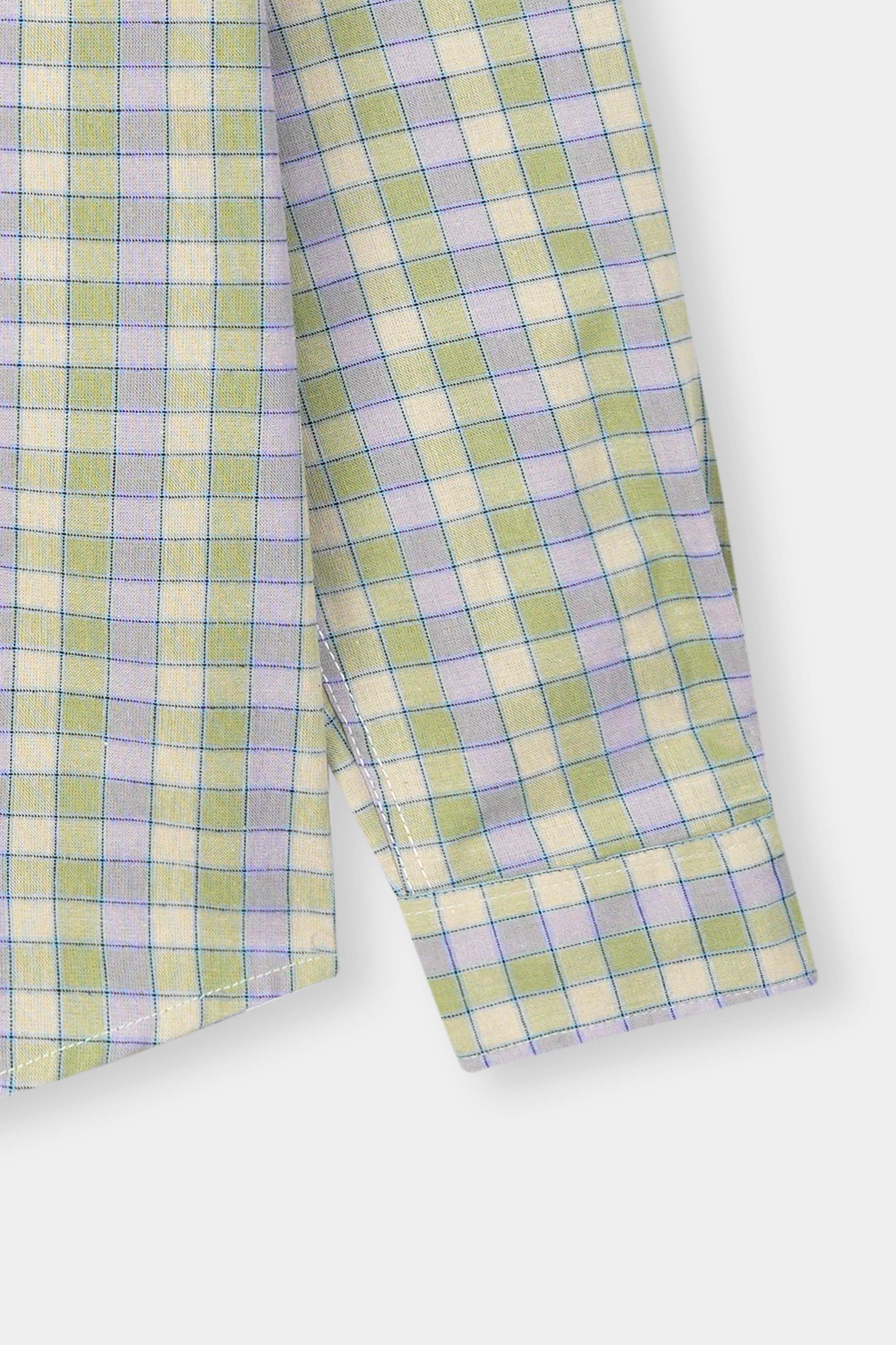 This full-sleeve shirt combines semi-formal and casual styles, crafted from durable cotton twill fabric for comfort and longevity. Featuring a regular fit, it offers a balanced silhouette suitable for various occasions. Available in distinctive box patterns with green and lavender hues, this shirt adds subtle color and texture to your wardrobe while maintaining a polished appearance. Ideal for those seeking versatile, quality apparel that transitions effortlessly between work and leisure.