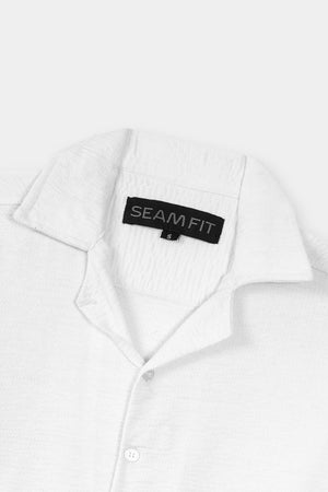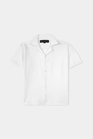 This white half-sleeve shirt features a classic coat collar combined with a Hawaiian-inspired design, crafted from cotton lycra stretchable fabric. Its regular fit ensures comfort and ease of movement, making it an ideal choice for both casual and semi-formal occasions. The breathable material offers durability and flexibility, enhancing wearability throughout the day.