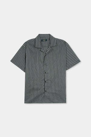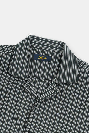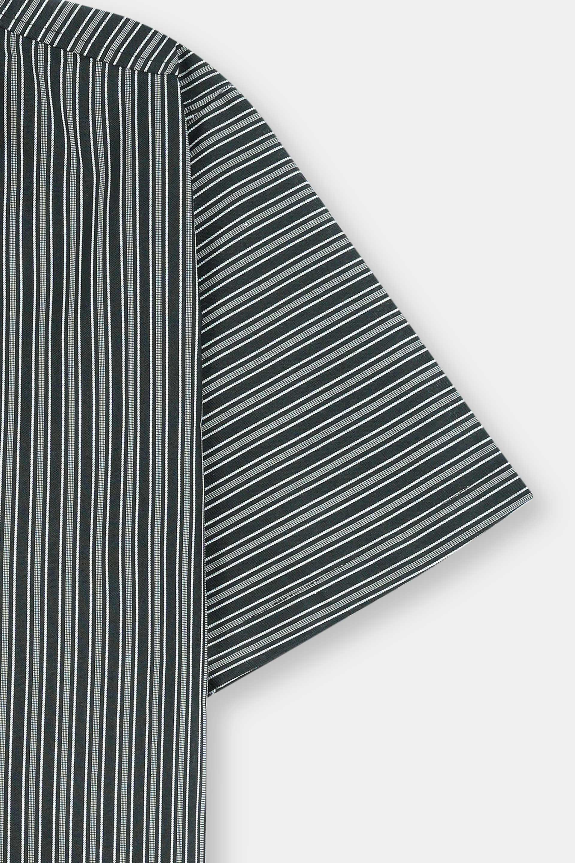 This half-sleeve Hawaiian shirt features a classic coat collar and a regular fit design, combining style with comfort. Crafted from a cotton and polyester blend, it offers durability and breathability. The black and grey striped pattern adds a sophisticated touch, making it versatile for casual or semi-formal occasions. Ideal for those seeking a refined yet relaxed look.