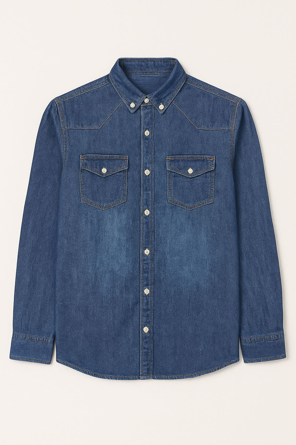 Crafted for timeless appeal, this classic blue denim shirt combines rugged durability with modern detail. Featuring a button-down collar, full placket with pearly buttons, and flap chest pockets, it’s designed with neat stitching and a clean silhouette. Perfect for both casual wear and smart layering, this versatile piece adds effortless style to any wardrobe.